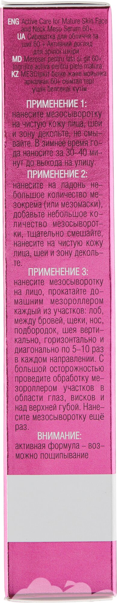 Сыворотка для лица и шеи Активный уход зрелой кожи 60+ Mezo Белита 20 мл Белита СП ООО (578415)