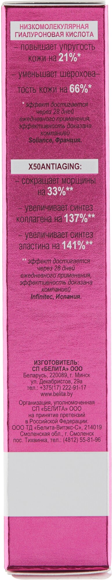 Оказывает видимый эффект подтягивания, эффективно разглаживает морщины, повышает тургор и плотность кожи, обеспечивает интенсивное увлажнение на 24 часа.