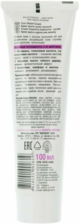Крем против сухих мозолей Foot care Белита 100 мл Белита СП ООО (578415)