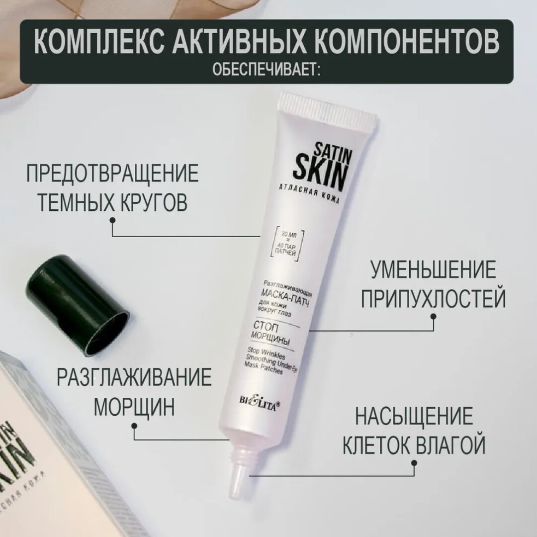 Маска-патч для кожи вокруг глаз Разглаживающая Стоп морщины Satin skin Белита 20 мл Белита СП ООО (578415)