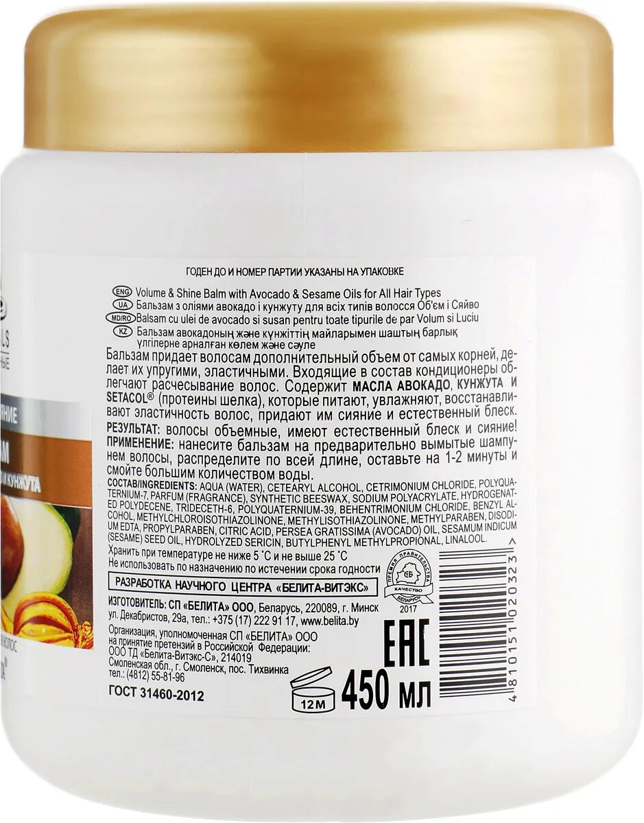 Бальзам для волос с маслами авокадо и кунжута Объем и Сияние Oil Белита 450 мл Белита СП ООО (578415)