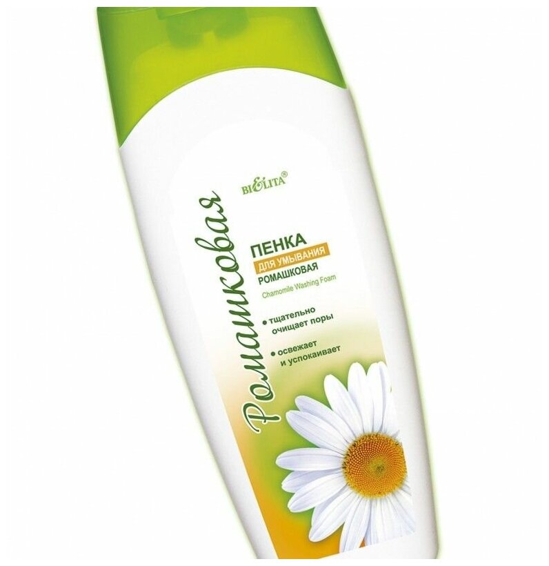 Глубокое и тщательное очищение от загрязнений и декоративной косметики, качественный уход за кожей лица, успокоение и придание ей свежести способна обеспечить ромашковая пенка для умывания, которая была разработана белорусской косметической компанией "Bielita".