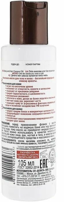 | Полное наименование | масло кокосовое для тела и волос Белита, 105 мл |