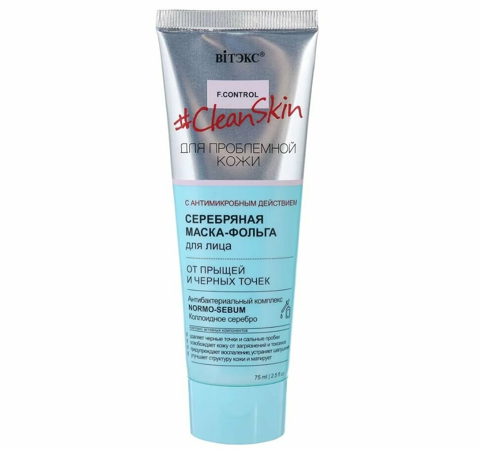 Маска-фольга для лица от прыщей и черных точек Серебряная Витэкс Clean skin 75мл Витэкс ЗАО (502566)