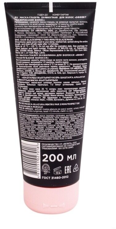 Маска-глазурь для волос 2-х минутная Эффект глазирования волос HydRoseDeLuxe Белита 200 мл Белита СП ООО (578415)