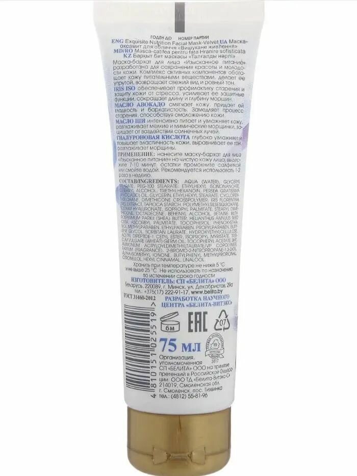 Маска-бархат для лица Изысканное питание Royal Iris Белита 75 мл Белита СП ООО (578415)
