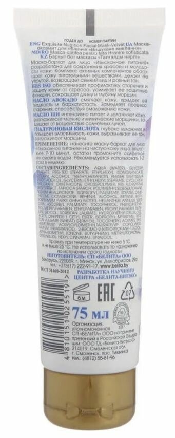 На сегодняшний день товар «Маска-бархат для лица Изысканное питание Royal Iris Белита 75 мл Белита СП ООО (578415)» можно купить с кешбеком в 1 магазине: Яндекс.Маркет