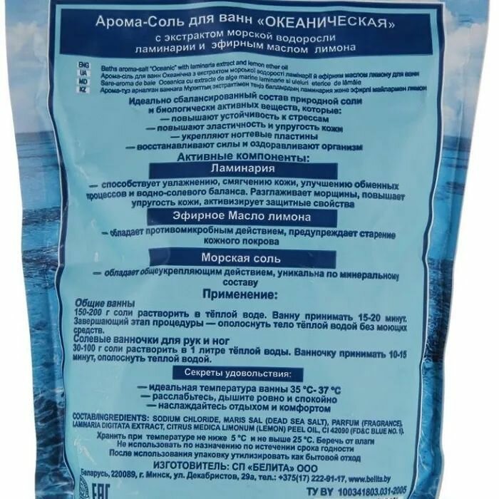 Арома-соль для ванн Океаническая с экстрактом морской водоросли ламинарии Белита 500 г Белита СП ООО (578415)