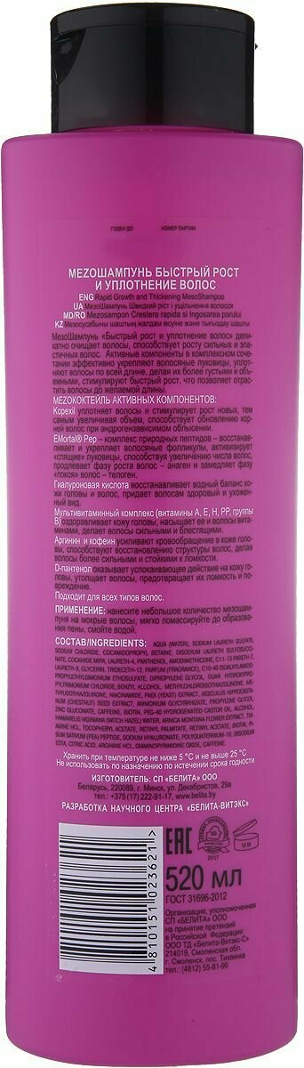 Шампунь Быстрый рост и уплотнение волос Mezo Белита 520 мл Белита СП ООО (578415)