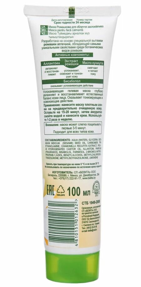 Маска для лица Успокаивающая Ромашковая Белита 100 мл Белита СП ООО (578415)
