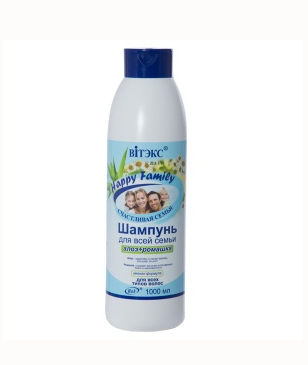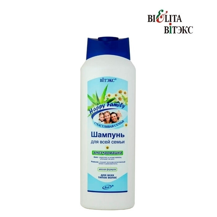 Шампунь для всей семьи Happy Family с алоэ и ромашкой бережно очищает волосы и кожу головы, не пересушивая их. Кондиционирующие компоненты шампуня придают волосам силу, блеск и эластичность. Специальная мягкая формула помогает обеспечить полноценный уход волосам любого типа.