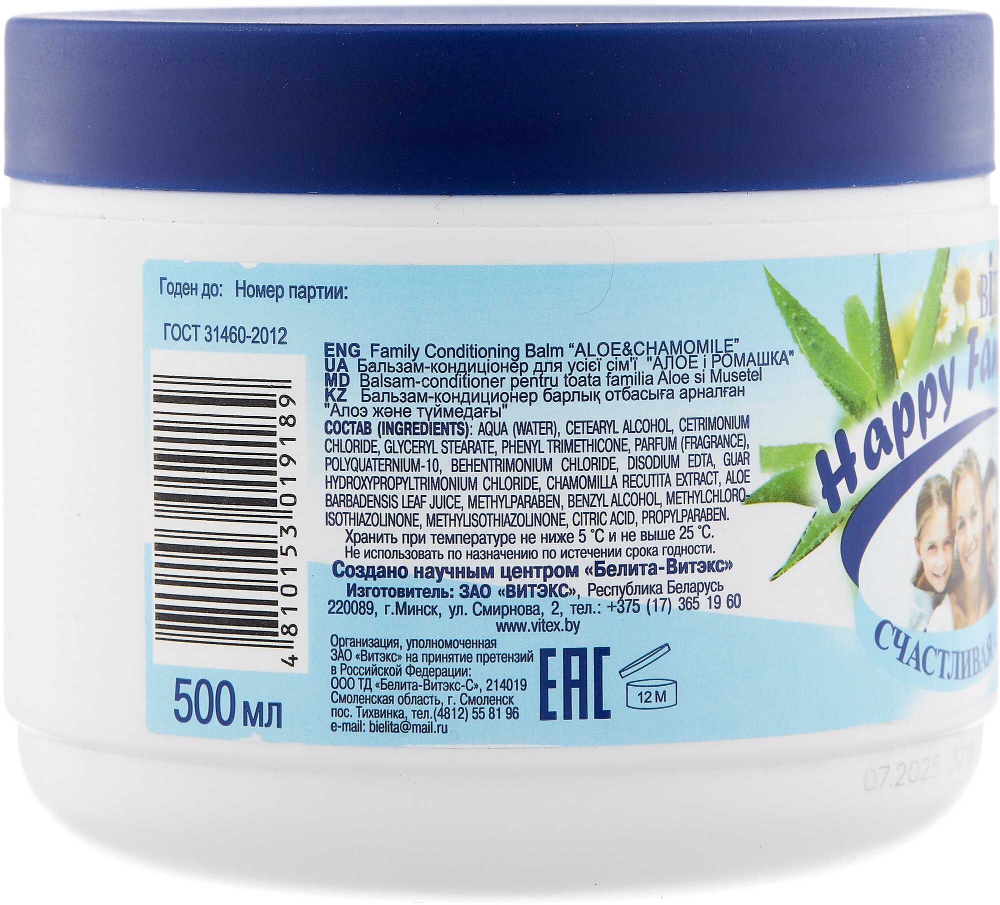 Бальзам-кондиционер для волос Happy Family с алоэ и ромашкой подходит для всей семьи. Особая, насыщенная, формула помогает обеспечить полноценный уход за волосами.