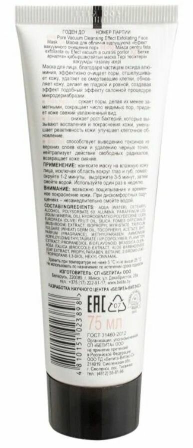 Маска для лица отшелушивающая с эффектом вакуумной чистки пор Ms.Безупречность Белита 75 мл Белита СП ООО (578415)