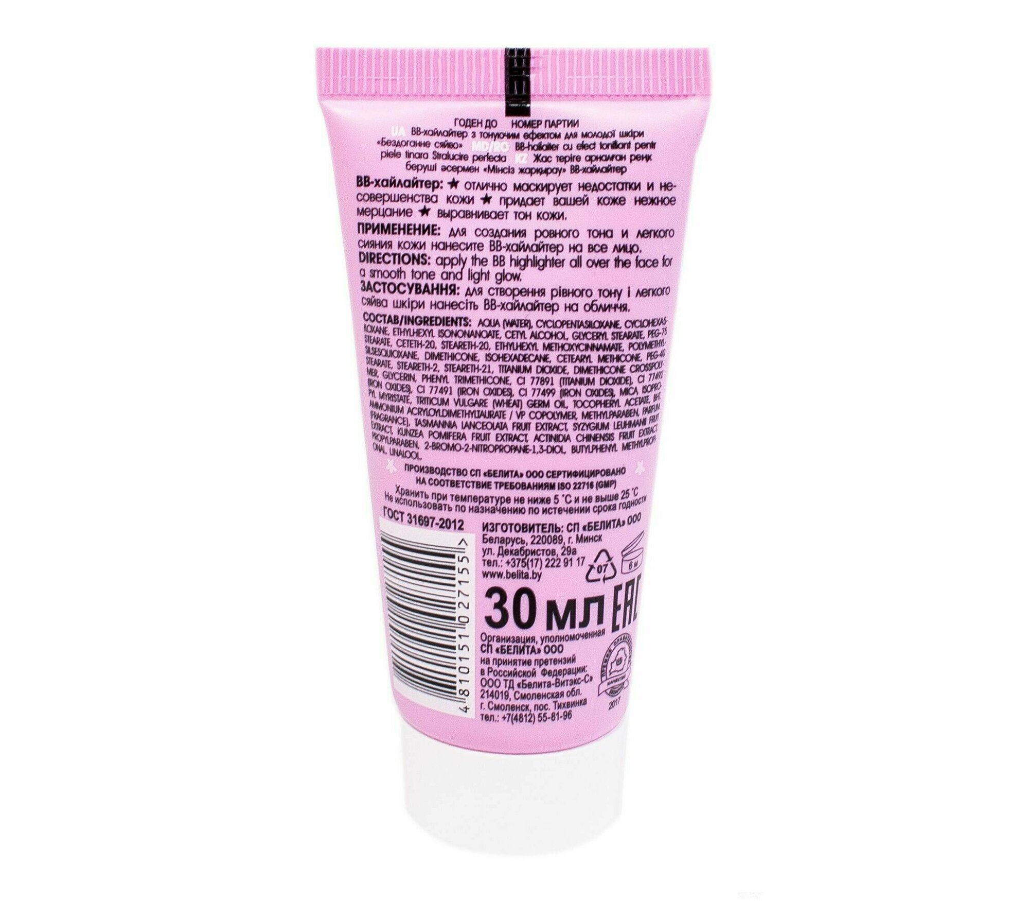 ВВ-хайлайтер с тонирующим эффектом для молодой кожи Безупречное сияние Young skin Белита 30 мл Белита СП ООО (578415)