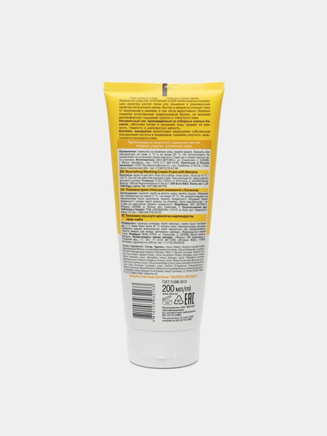 Идеальное средство, сочетающее в себе превосходные очищающие свойства мягкой пенки для умывания и ухаживающие свойства питательного крема. Быстро и аккуратно очищает кожу от загрязнений и макияжа, в том числе водостойкого, бережно сохраняя естественный гидролипидный баланс, не вызывая дискомфортных ощущений сухости и стянутости кожи. Натуральный сок, произведенный из отборных спелых бананов, заботливо питает и увлажняет кожу, придает ей нежность, гладкость и шелковистую мягкость. Коктейль минералов препятствует разрушению собственной гиалуроновой кислоты в эпидермисе, сохраняя упругость, эластичность и молодость кожи. Превосходный результат: идеально чистая, гладкая, упругая, ухоженная кожа.