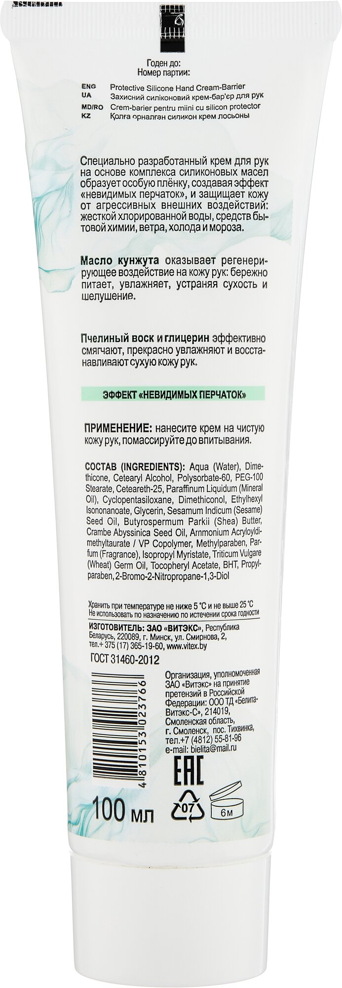 Крем-барьер для рук защитный силиконовый Идеальные ручки Витэкс 100мл Витэкс ЗАО (502566)