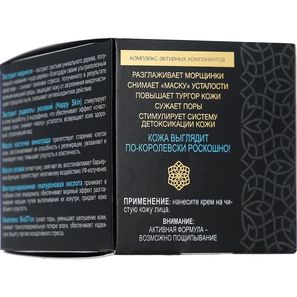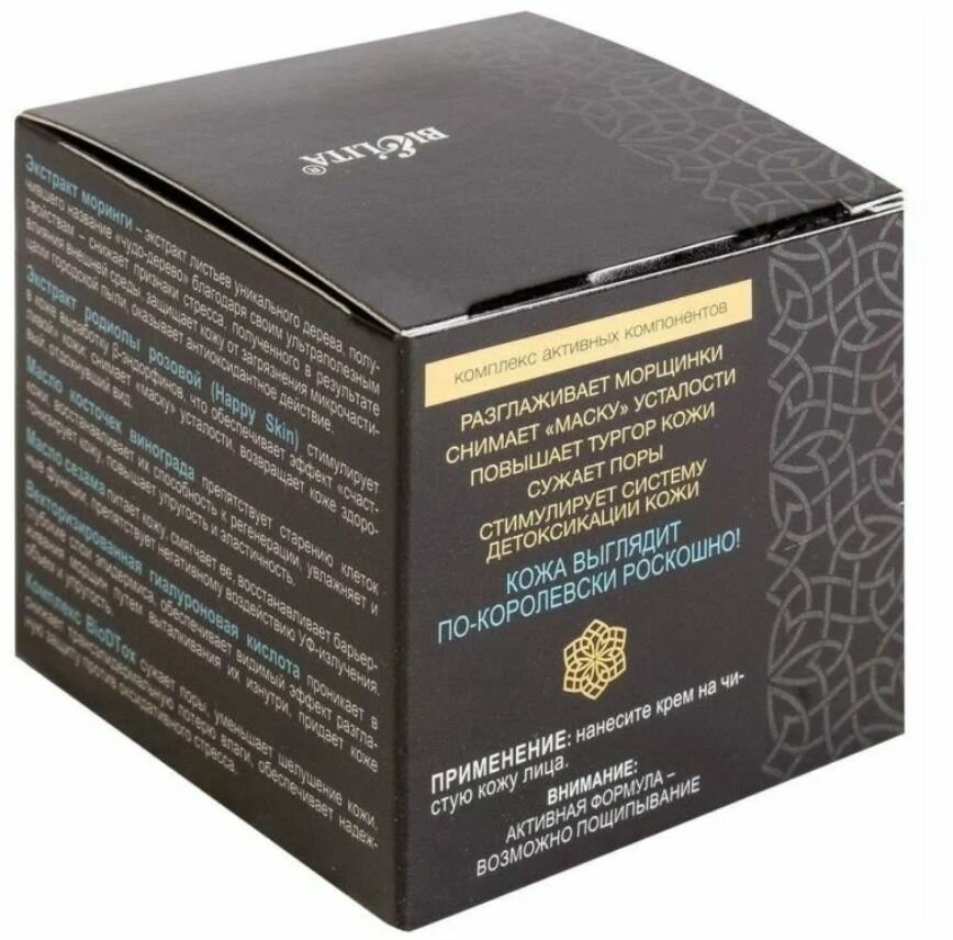Подходит для всех типов кожи. Ночной крем для лица, благодаря комплексу активных компонентов (экстрактам моринги и родиолы розовой, маслам сезама и косточек винограда, векторизированной гиалуроновой кислоте, антиоксидантному комплексу BioDTox), оказывает преображающее действие на кожу: стимулирует клетки кожи к регенерации питает и увлажняет повышает тургор кожи разглаживает морщинки за время ночного сна снимает "маску" усталости сужает поры нейтрализует действие свободных радикалов выравнивает цвет лица рекомендуемый возраст — от 25-ти лет и старше.