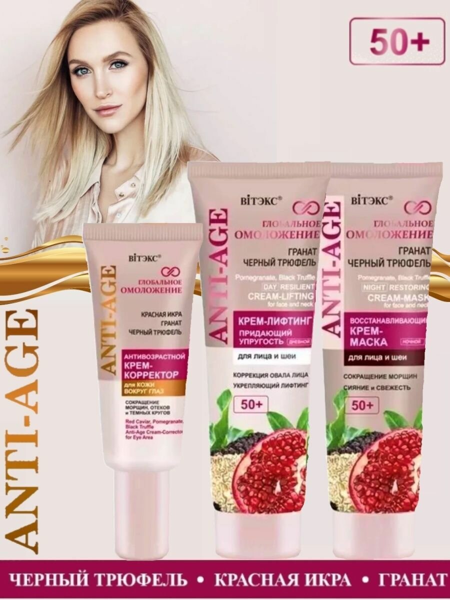 Крем-маска для лица и шеи ночной Гранат+красная икра+черный трюфель Витэкс Антивозрастной 60+ 50мл Витэкс ЗАО (502566)
