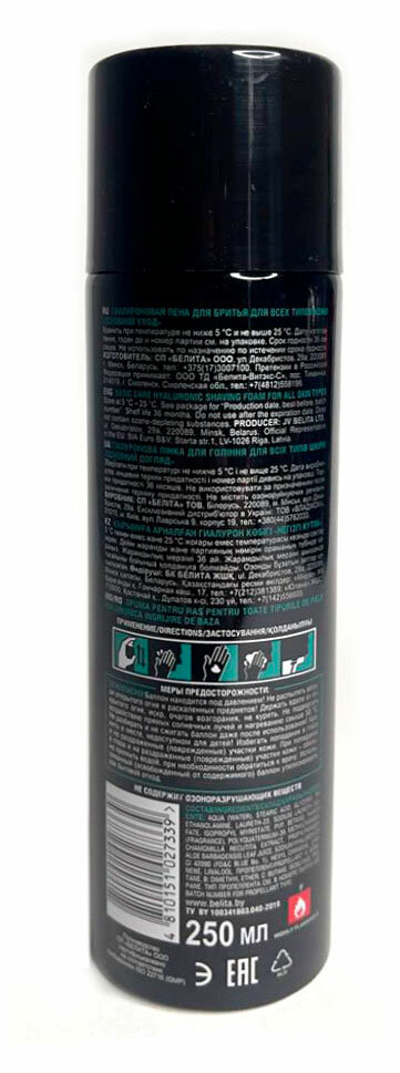 Пена для бритья для всех типов кожи Гиалуроновая основной уход men For men Белита 250мл Белита СП ООО (578415)