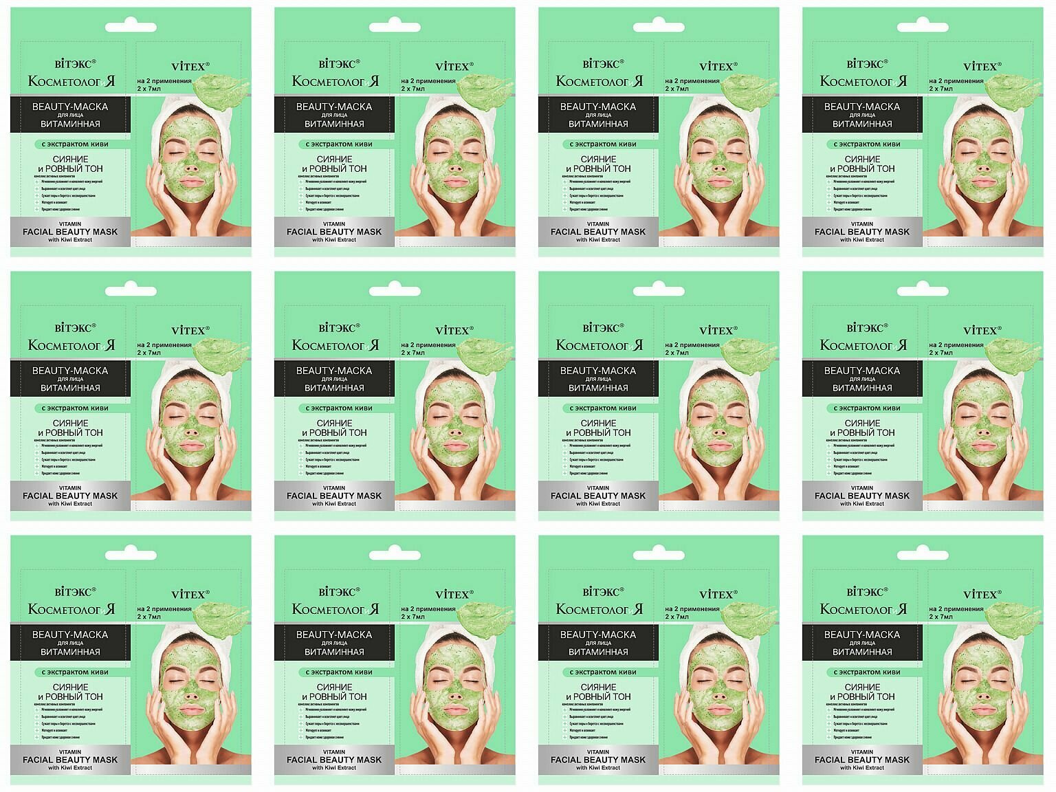 Beauty-маска для лица Витаминная с экстрактом киви Витэкс КОСМЕТОЛОГиЯ 7мл 2шт Витэкс ЗАО (502566)