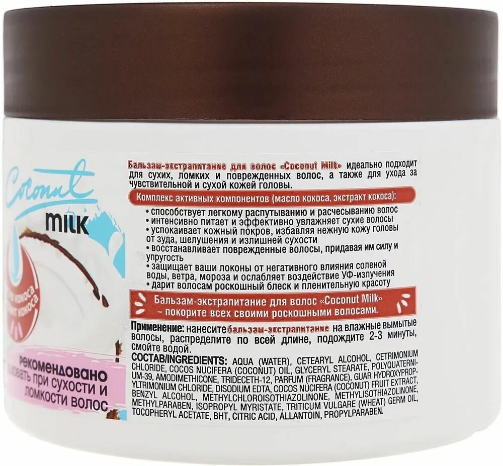 Бальзам-экстрапитание для волос "Coconut Milk" идеально подходит сухих, ломких и поврежденных волос, а также для ухода за чувствительной и сухой кожей головы.
