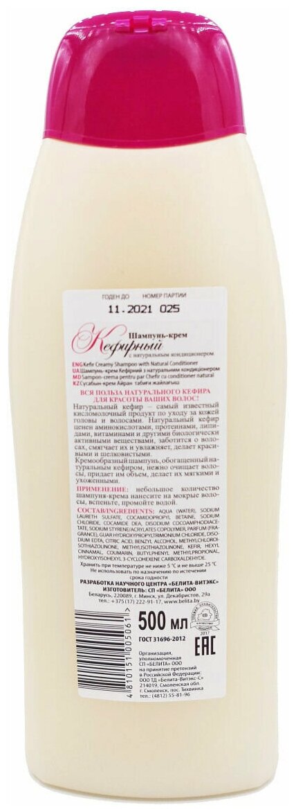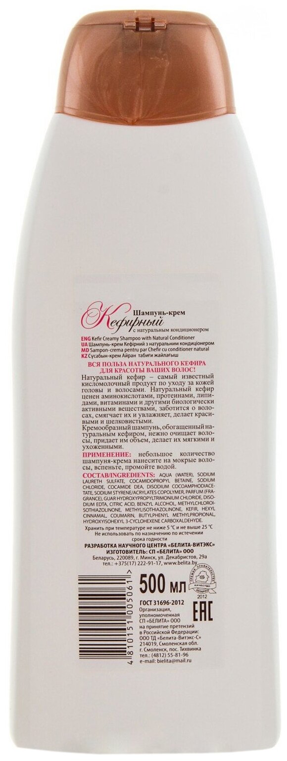 Шампунь-крем для волос Кефирный Белита 500 мл Белита СП ООО (578415)