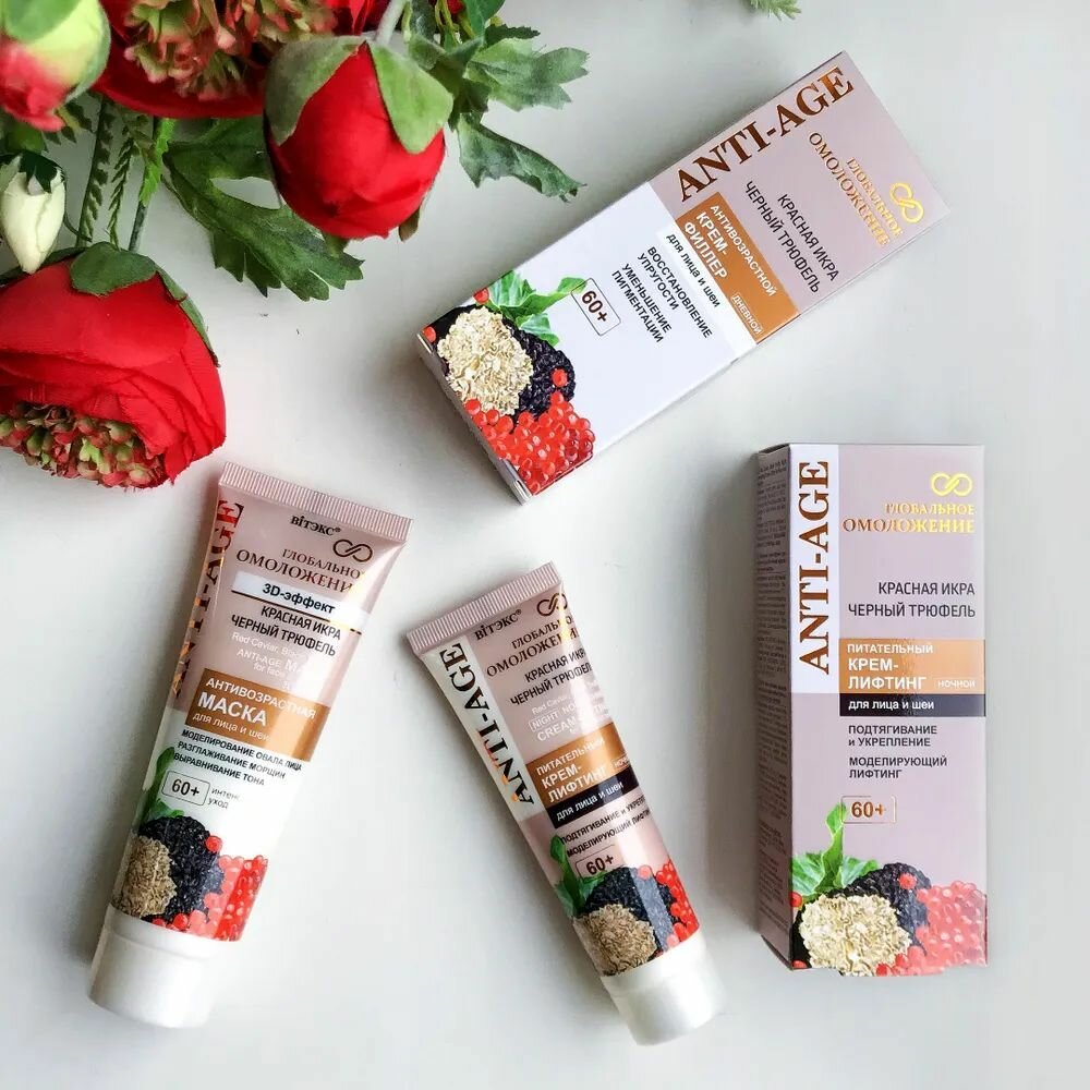 Активные компоненты (черный трюфель, красная икра, гиалуроновая кислота, витамины А и Е, инновационные антивозрастные комплексы) помогают день за днем бороться с существующими признаками старения кожи и противостоять появлению новых, обеспечивая 3D-эффект омоложения кожи лица и шеи: заполнение и разглаживание морщин, уменьшение их глубины и количества; возвращение лицу округлости и молодости контуров; выравнивание цвета лица.