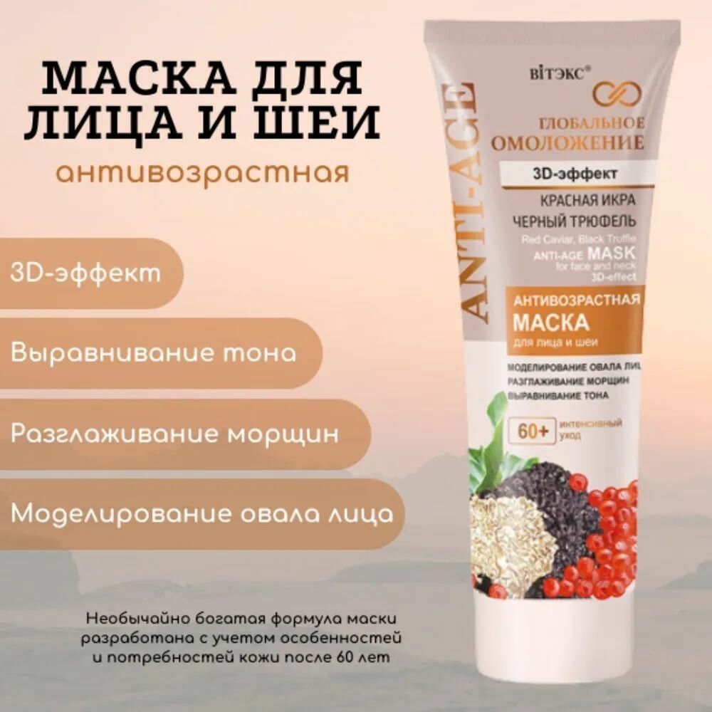 Маска для лица и шеи Красная икра и черный трюфель 3D-эффект Витэкс Антивозрастная 60+ 75мл Витэкс ЗАО (502566)