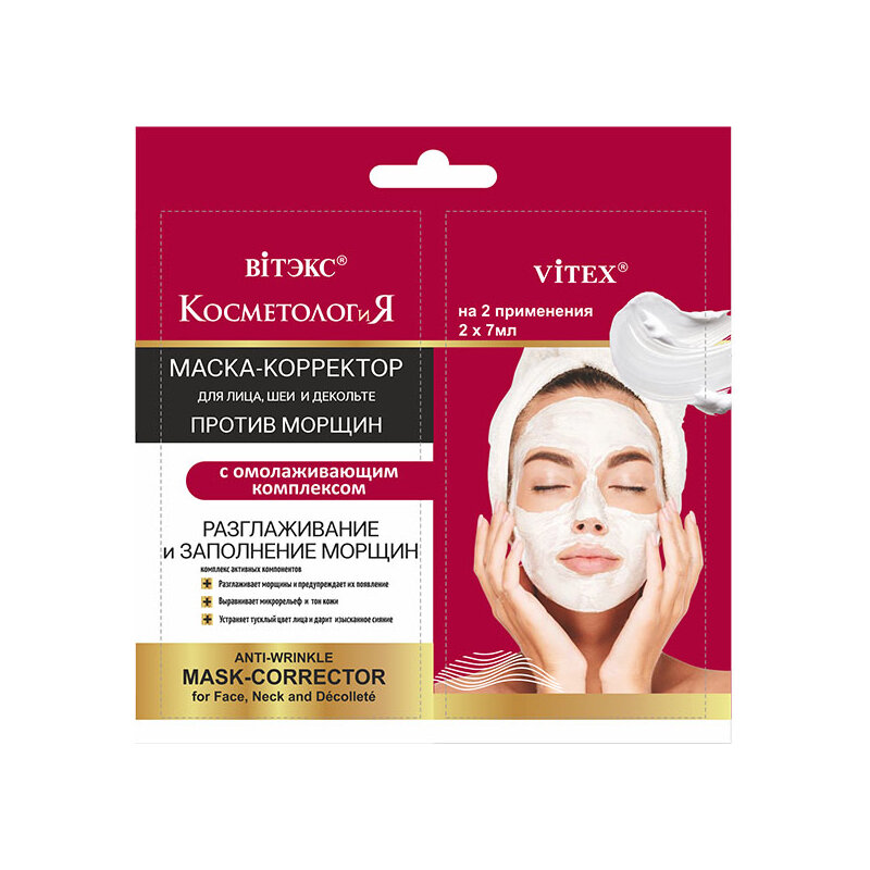 Маска-корректор для лица шеи и декольте против морщин Омолаживающая Витэкс КОСМЕТОЛОГиЯ 7мл 2шт Витэкс ЗАО (502566)