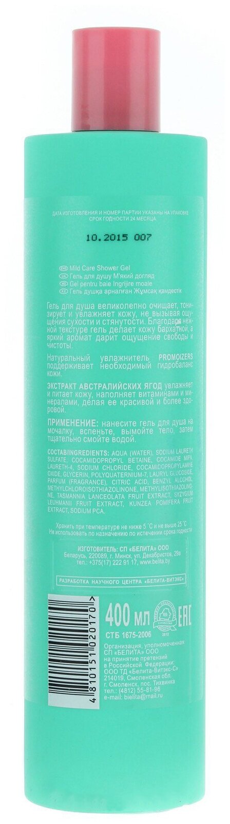 Гель для душа великолепно очищает, тонизирует и увлажняет кожу, не оставляя ощущения сухости и стянутости кожи. Благодаря шелковистой текстуре гель делает кожу бархатной, а дерзкий аромат дарит ощущение свободы и чистоты. Натуральный увлажнитель Promoizers поддерживает необходимый гидробаланс кожи. Экстракт австралийских ягод увлажняет и питает кожу, мгновенно наполняет кожу витаминами и минералами, делая ее красивой и более здоровой.