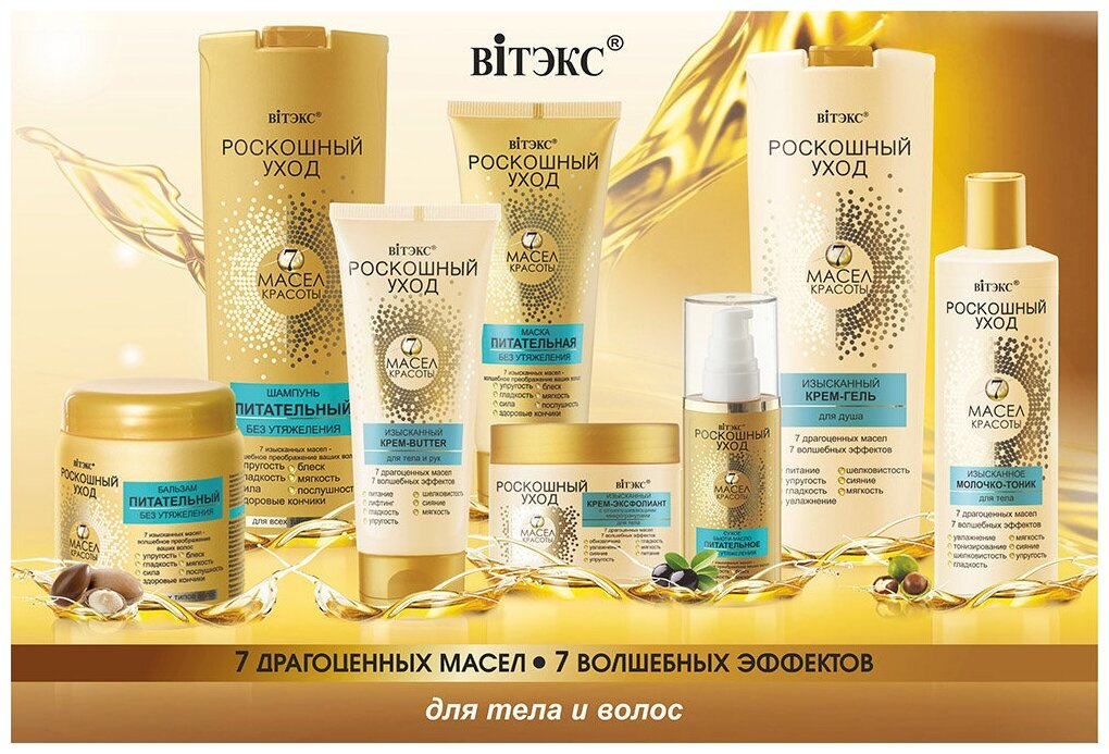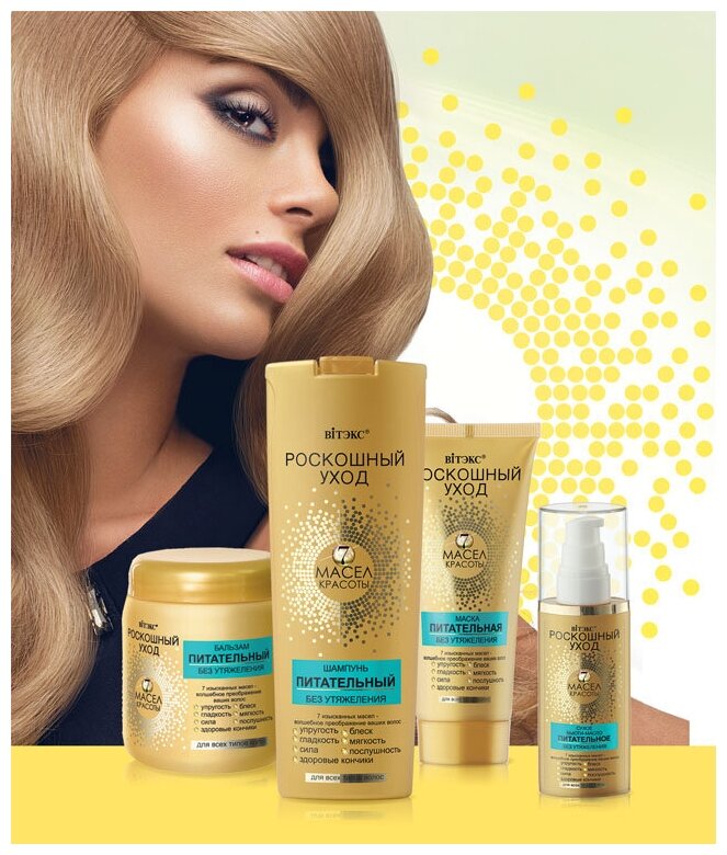 Благодаря своей роскошной тающей текстуре и формуле уникальный эликсир из 7 ценных масел красоты интенсивно питает волосы по всей длине.