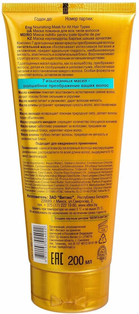 Маска для всех типов волос Питательная без утяжеления 7 масел Витэкс 200мл Витэкс ЗАО (502566)
