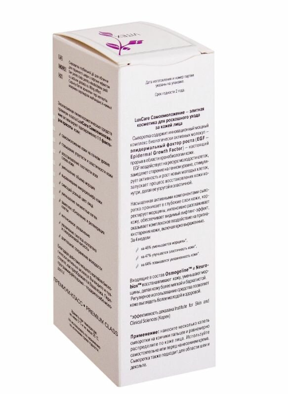 Насыщенная активными компонентами сыворотка проникает в глубокие слои кожи, корректирует морщины, интенсивно разглаживает кожу. Обеспечивает видимый лифтинг-эффект оказывает комплексное воздействие на признаки старения кожи, включая ярко выраженные.