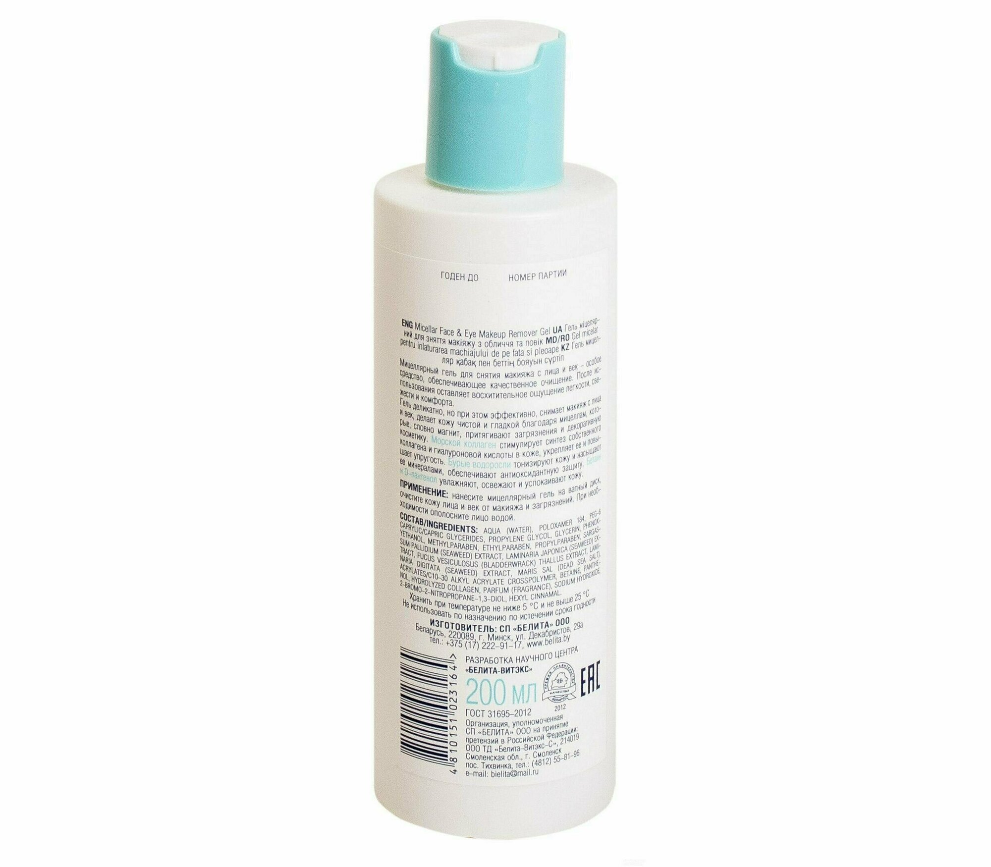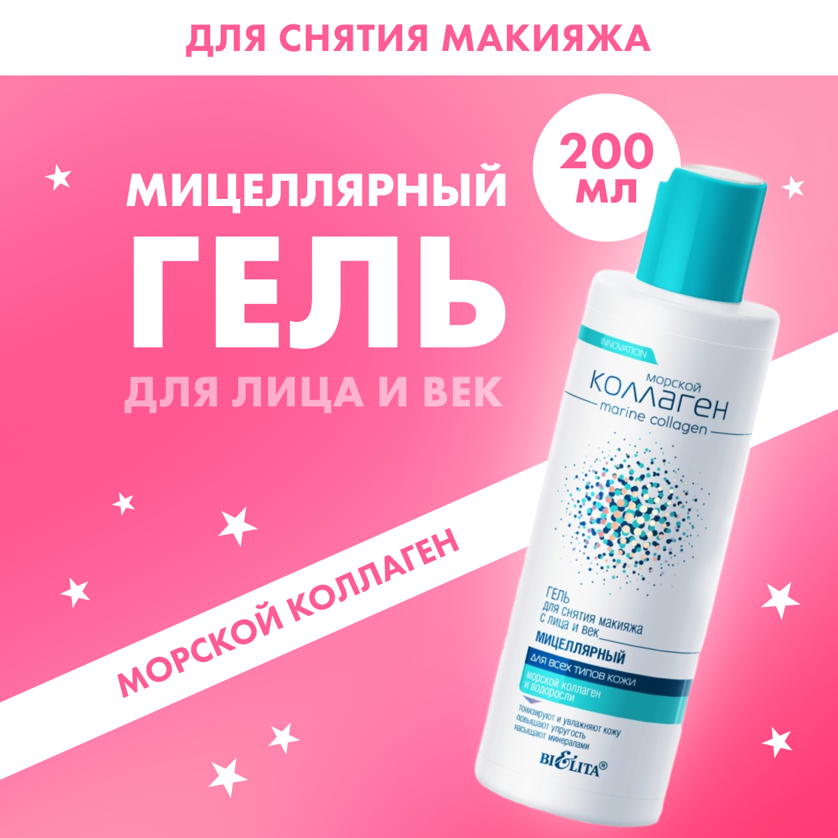 Гель для снятия макияжа с лица и век Мицеллярный Морской коллаген Белита 200 мл Белита СП ООО (578415)