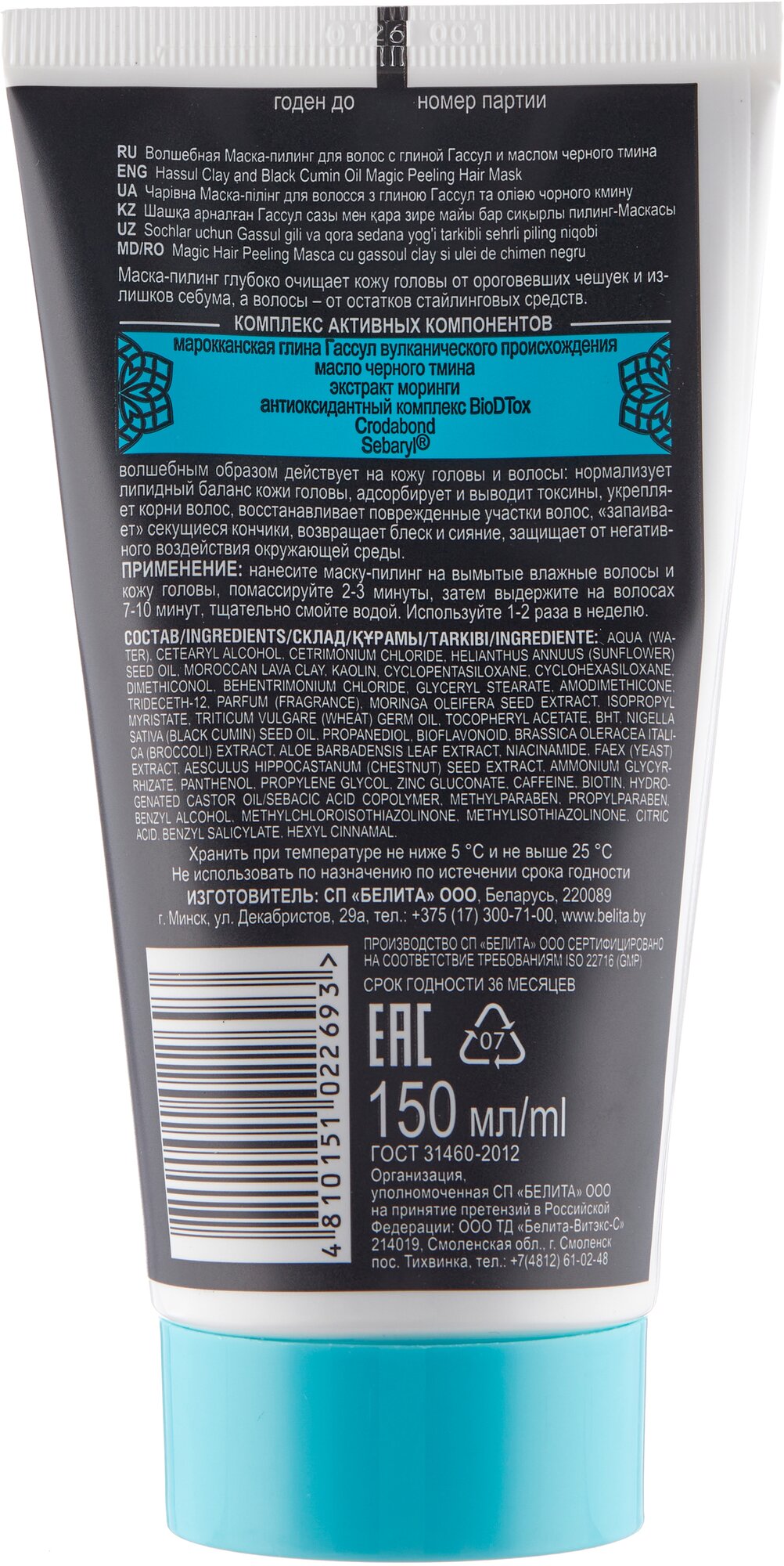 Маска-пилинг для волос с глиной Гассул и маслом черного тмина Магия Марокко Белита 150 мл Белита СП ООО (578415)
