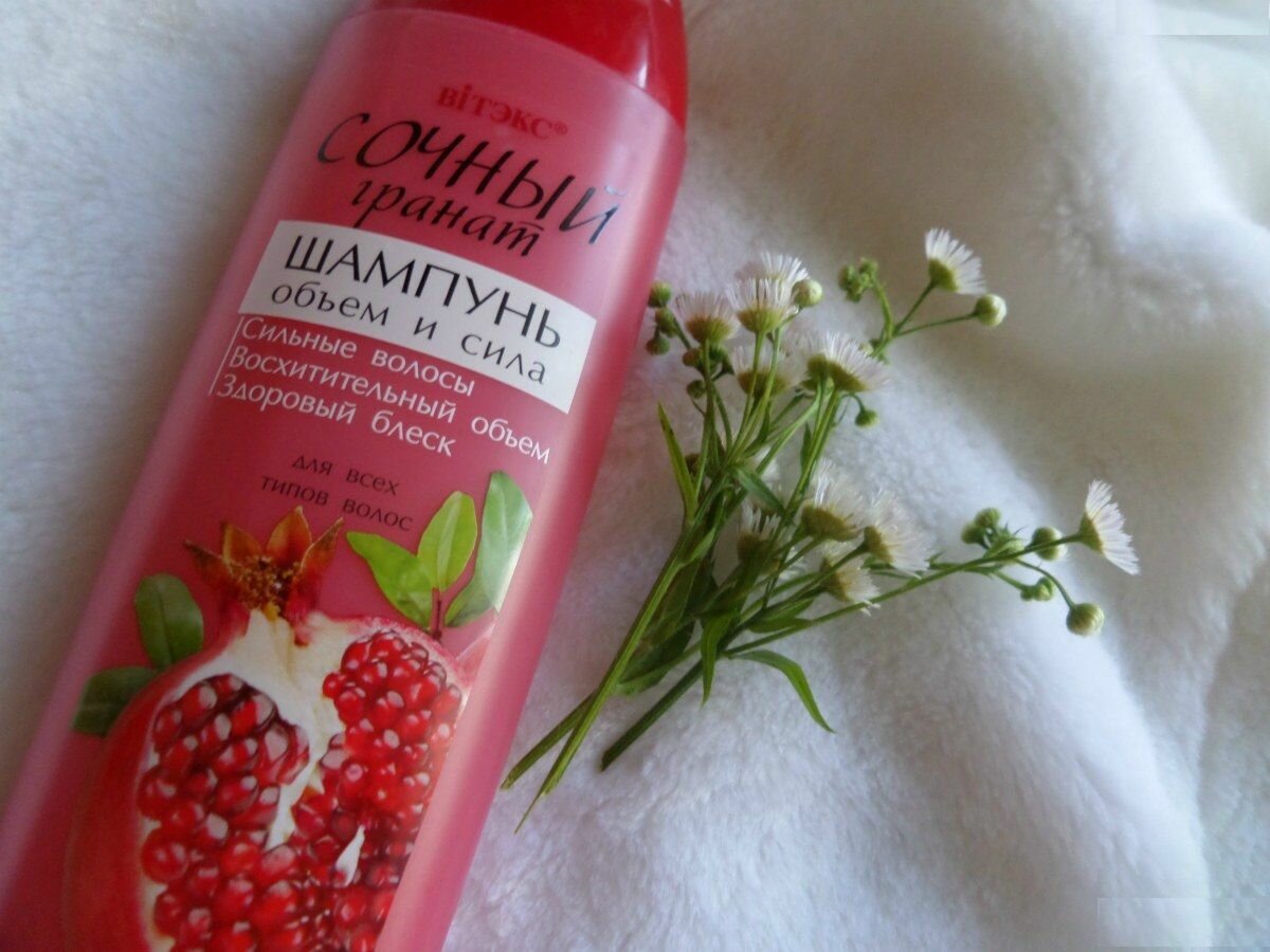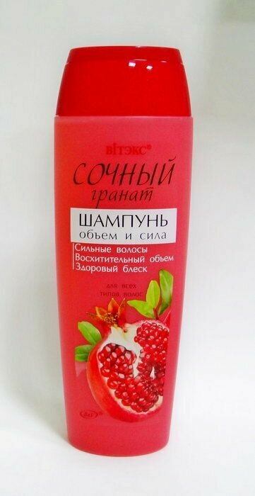 Шампунь "Сочный гранат" великолепно очищает волосы, не нарушая их гидролипидный слой. Придает волосам: невероятный объем, здоровый блеск. С шампунем "Сочный гранат" Ваши волосы приобретают жизненную силу и дополнительный объем.