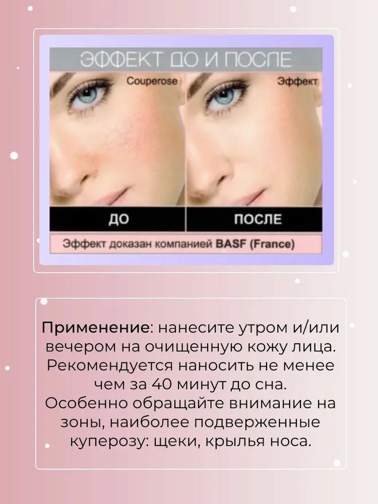 Специальная формула крема разработана с учетом особенностей кожи, склонной к покраснениям и раздражениям. Запатентованный растительный комплекс Biophуtex оказывает направленное действие против проявления признаков купероза, укрепляет стенки капилляров и снижает их ломкость, уменьшает интенсивность покраснений и чувствительность кожи. Комплекс масел Stimu-tex, основанный на ценных маслах, активно питает и успокаивает кожу, делая ее мягкой, гладкой и упругой. Крем "замыкает" влагу в кожу, обеспечивая длительное увлажнение. Не содержит парфюмерной композиции, поэтому подходит для людей с чувствительной кожей. Результат: кожа преображается — сосудистый рисунок становится менее выраженным, тон и рельеф кожи выравниваются. Максимальный результат достигается при комплексном применении всех средств линии. Эффект накапливается и сохраняется надолго. Рекомендуется использовать с 25 лет. Крем не содержит парфюмерной композиции, поэтому подходит для людей с чувствительной кожей.
