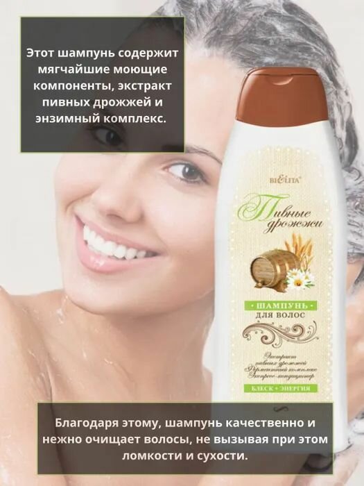 Белита Пивные дрожжи 500 мл - шампунь для волос, станет незаменим помощником в вашем ежедневном уходе. Средство бережно очищает кожу головы, придавая волосам блеск и ощущение свежести.
