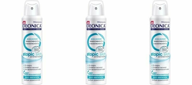 Деликатная гипоаллергенная формула Deonica Atopic Skin создана специально для людей, чья кожа склонна к появлению аллергических реакций, дерматитов и раздражений. Активные компоненты, входящие в состав, успокаивают раздраженную кожу и поддерживают ее естественную среду, обеспечивая надежную защиту до 48 часов. Интеллектуальная технология Smart Control с активными капсулами свежести пролонгирует действие антиперспиранта. Способ применения. Перед применением встряхнуть. Распылять на кожу с расстояния 15-20 см. Использовать только по назначению. Если распылитель засорился, промойте его теплой водой.