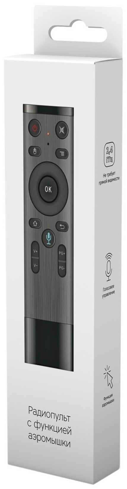 Пульт ДУ Rombica Air R9 предназначен для медиаплееров, работающих на базе ОС Android версии 4.2 и выше. Он подключается за счет приемного блока с USB-интерфейсом. Дальность его действия в помещении равна 10 м, в том числе и в условиях непрямой видимости. Интегрированный гироскоп автоматически определяет позиционирование. Устройство функционирует от двух батареек типа ААА. Его вес 47 г. Корпус изготовлен из высококачественного пластика, стойкого к износу и механическим повреждениям. Конфигурацией представлено 16 силиконовых кнопок с мягким нажатием и быстрым откликом. На них изображены интуитивно понятные символы, которые не сотрутся со временем.