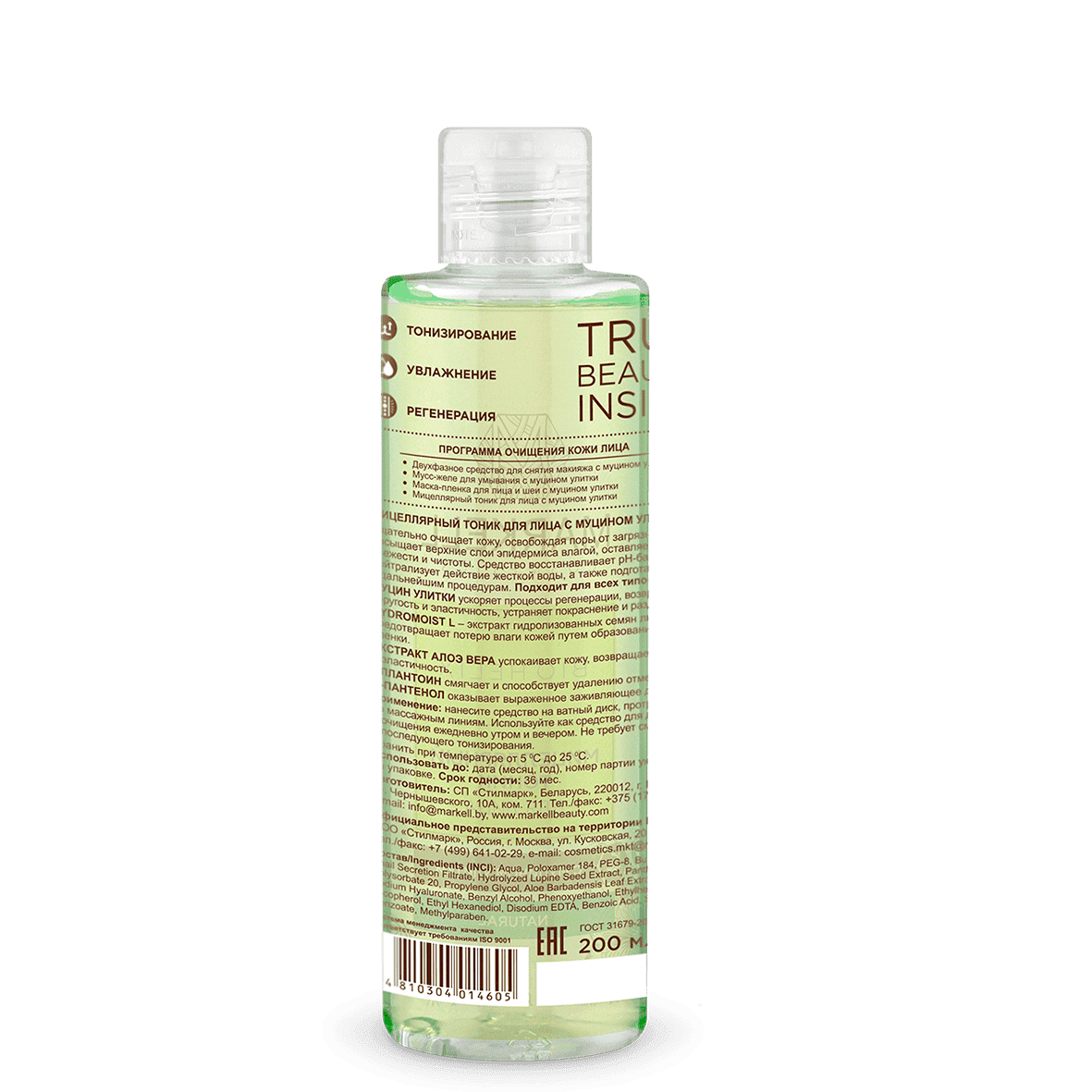 Мицеллярный тоник MARKELL для лица с муцином улитки 200мл