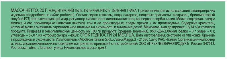 Сервис сравнения цен СкидкаГИД предлагает сравнить цены на товар «Пищевой краситель С.Пудовъ Зеленый 20г»