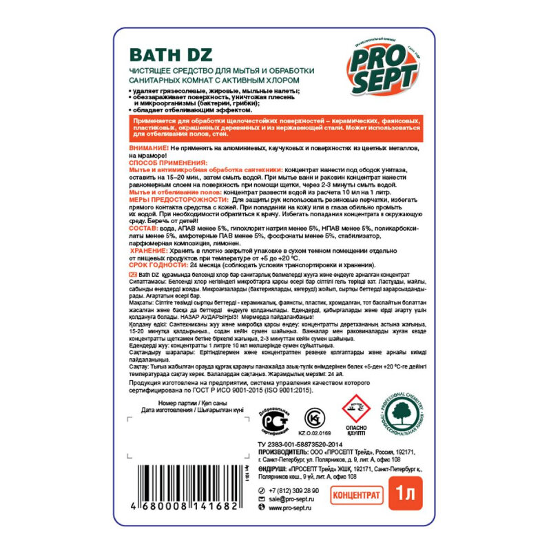 Чистящее средство Prosept для уборки и дезинфекции санитарных комнат 1л Bath DZ