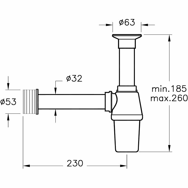 - Диаметр слива: 63 мм.