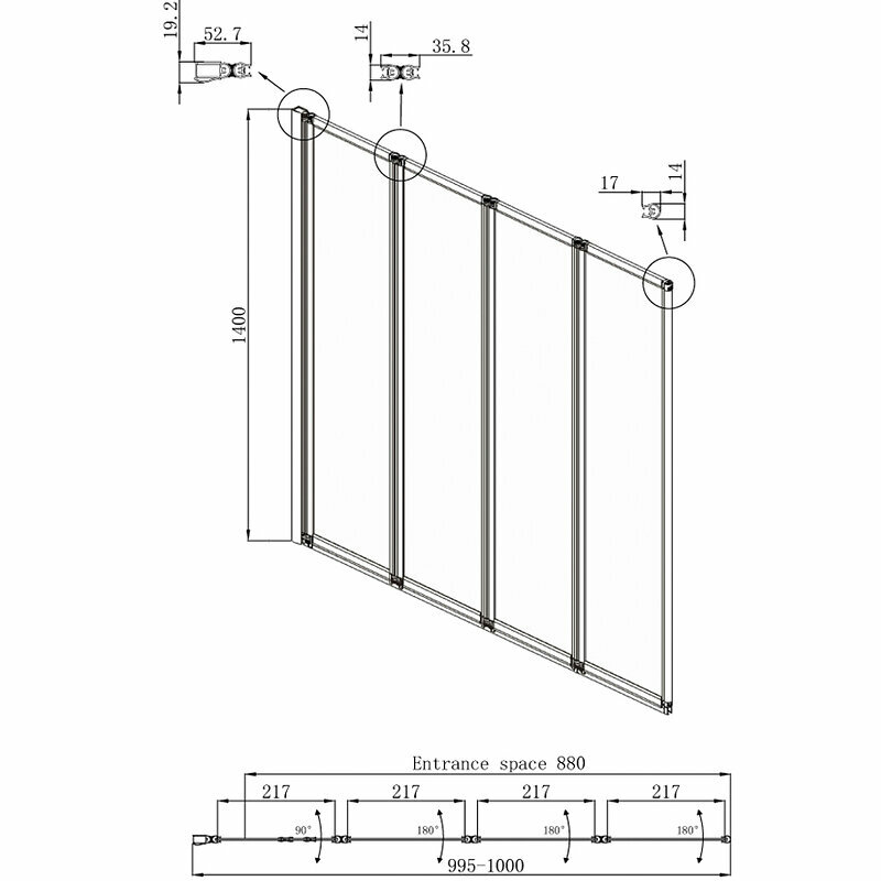 Шторка для ванны Ambassador Bath Screens 16041111L (1000x1400), 1 место, алюминиевый профиль. Безопасное закаленное стекло Crystal Pure с особым блеском и исключительной прозрачностью. Защитное покрытие стекла Easy Clean обладает гидрофобными свойствами, благодаря чему капли воды не удерживаются на поверхности стекла и стекают, не оставляя следа. Толщина стекла - 4 мм. Конструкция дверей - складная. Металлические крепления. Простая установка.