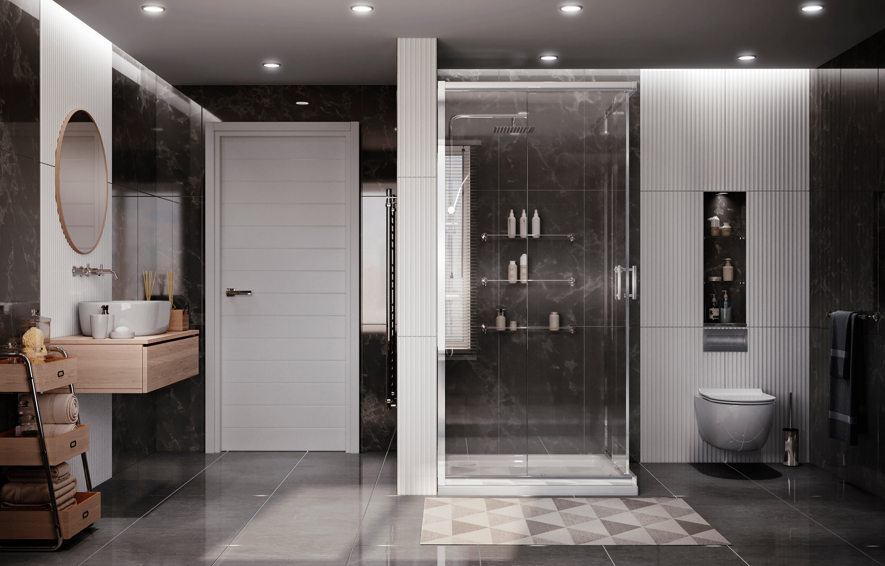 Приятный внешний вид, большие удобные ручки, дверцы без перекосов, ход на роликах плавный и нешумный, на стеклах не остаются разводы. Мыться удобно, места вполне хватает, отсутствие крыши только плюс.