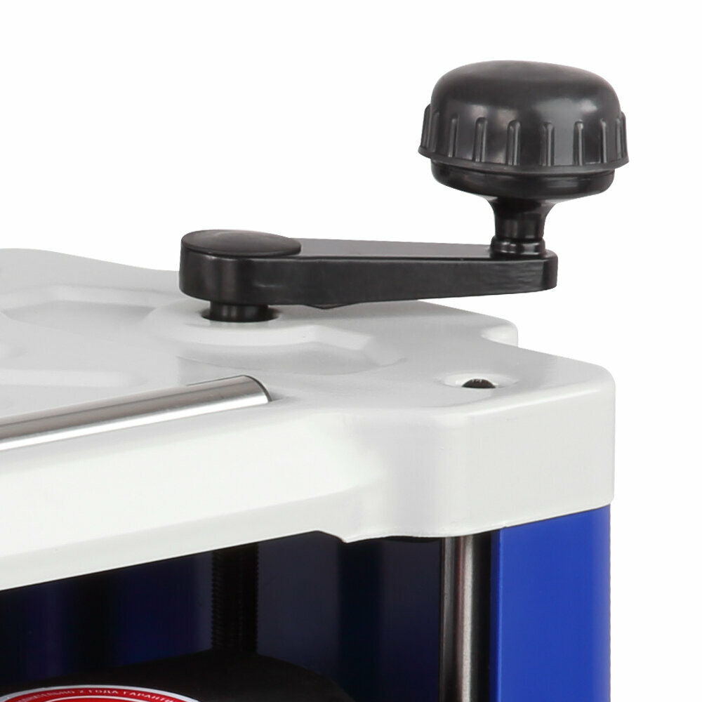Модель оборудована индикатором строгания, отображающим высоту снятия за один проход, и рукояткой регулировки, перемещающей рабочую платформу.