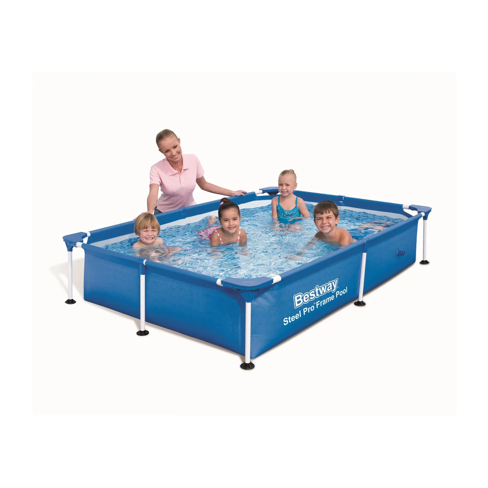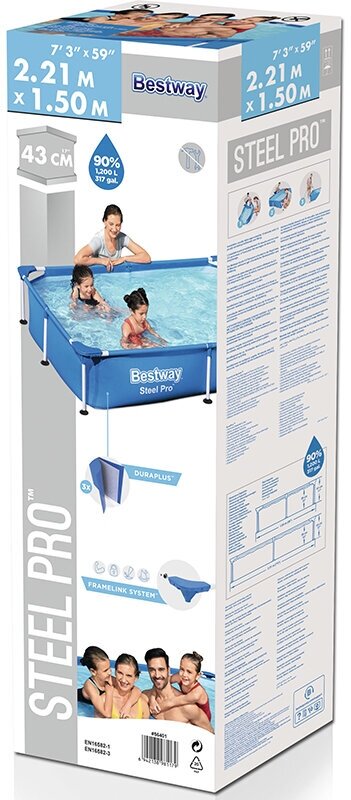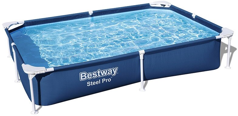Прямоугольный каркасный бассейн Bestway отличается высокой прочностью и устойчивостью. Чаша выполнена из высококачественного трехслойного ПВХ: два слоя плотного винила и между ними сетка из полиэстера для особой прочности. Цвет чаши бассейна снаружи синий, внутренняя поверхность имеет расцветку под мозаику. Каркас металлический, покрытый предотвращающим появление коррозии слоем пластика.