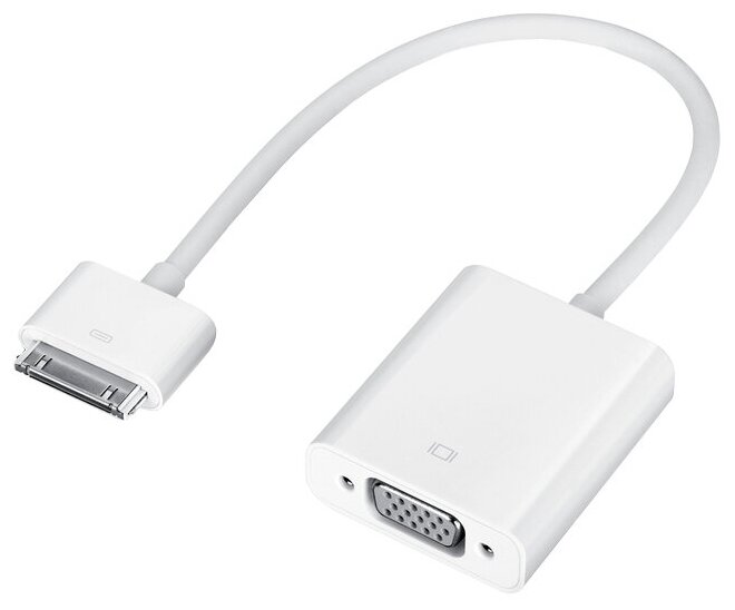 | Прочие особенности и свойства | С помощью адаптера Apple VGA можно дублировать с экрана iPad или iPhone 4S любые материалы:приложения, презентации, веб-сайты и многое другое — на телевизор с поддержкой VGA, монитор, проектор или другой совместимый экран, в HD-формате до 1080p. Функция видеоповтора поддерживается на iPad 2 или новее, а также на iPhone 4S.,,Подключив iPad, iPhone 4 или iPod touch (4-го поколения) к телевизору, проектору или другому экрану с поддержкой VGA, вы можете смотреть слайд-шоу и видео на большом экране с частотой развёртки до 720p. Поддерживается также вывод видео с частотой развёртки до 1080p с iPad 2 или новее и iPhone 4S, и с частотой развёртки до 720p с iPad, iPhone 4 и iPod touch (4-го поколения). Фильмы воспроизводятся с частотой развёртки до 720p.,,Адаптер Apple VGA подключается к iPad, iPhone 4, iPhone 4S, iPod touch (4-го поколения), док-станции iPad Dock или универсальной док-станции через разъём для док-станции, а к проектору или монитору — через адаптер VGA. |
