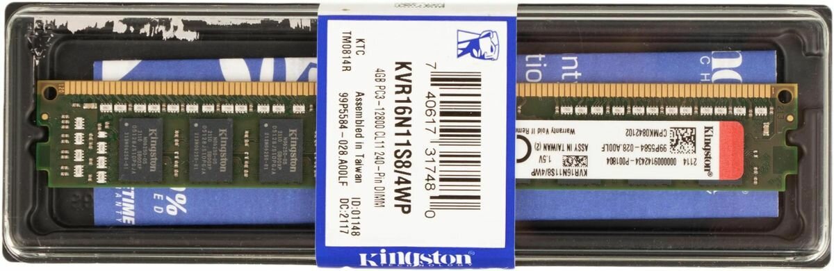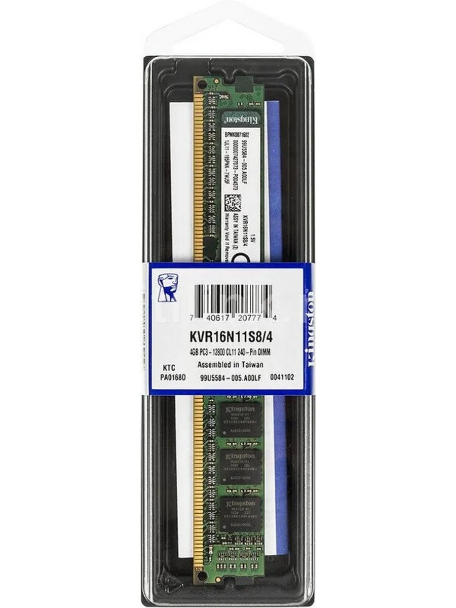Модуль памяти DDR3 4GB Kingston 1600MHz CL11 1.5V 1R 4Gbit KVR16N11S8/4WP